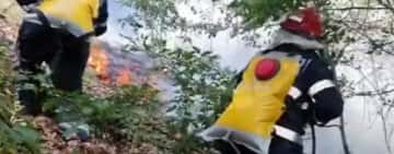 VIDEO - Pompierii buzoieni se luptă, de duminică, pentru stingerea unui incediu izbucnit înn pădurea la de Mânzălești