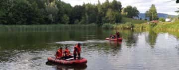 Pompierii din Buzău și un echipaj de scafandri caută un bărbat care s-ar fi înecat în lacul de pe platoul Meledic