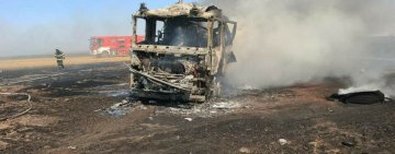 Mașină de pompieri distrusă de un incendiu, în timp ce se deplasa către o intervenție