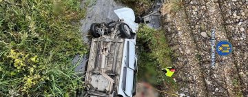 Un autoturism condus de un tânăr a ajuns în albia unui pârâu. Șoferul a scăpat cu viață în mod incredibil