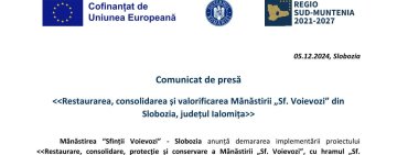 Comunicat de presă -Restaurarea, consolidarea și valorificarea Mănăstirii „Sf. Voievozi” din Slobozia, județul Ialomița