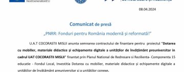 Comunicat de presă | „PNRR: Fonduri pentru România modernă și reformată!” | U.A.T. COCORASTII MISLII