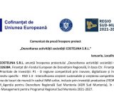 Comunicat de presă începere proiect - „Dezvoltarea activității societății COSTELINA S.R.L.”