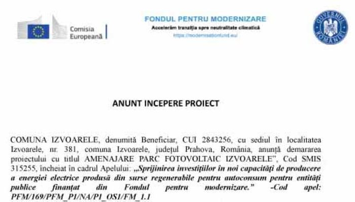 ANUNT INCEPERE PROIECT - COMUNA IZVOARELE