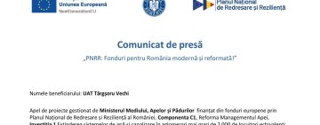 Comunicat de presă - „PNRR: Fonduri pentru România modernă și reformată!” - UAT Târgșoru Vechi