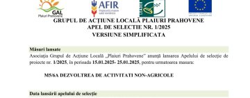 Grupul de Acţiune Locală „Plaiuri Prahovene” - APEL DE SELECTIE NR. 1/2025 - VERSIUNE SIMPLIFICATA