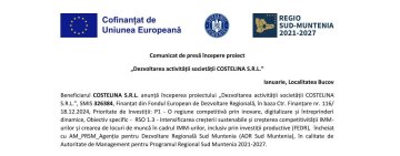Comunicat de presă începere proiect - „Dezvoltarea activității societății COSTELINA S.R.L.”