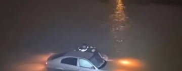 Mașină înghițită de apele Jiului. Șoferița salvată la limită din râul înghețat