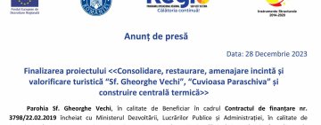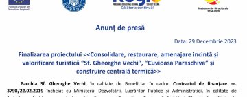ANUNȚ PARTICIPARE PROCEDURĂ COMPETITIVĂ - Restaurarea, consolidarea, punerea în valoare a Bisericii “Sf. Gheorghe și Sf. Treime” și a trapezei din cadrul Mănăstirii Stănișoara