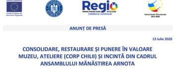 ANUNȚ DE PRESĂ - 13 Iulie 2020 - Mănăstirea Arnota