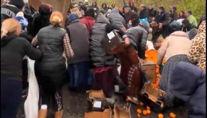 Bătaie pe portocale după ce un TIR s-a răsturnat. Oamenii s-au călcat în picioare să adune fructele de pe jos