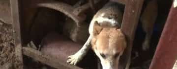 Zeci de câini ținuți în condiții înfiorătoare, salvați dintr-o fermă abandonată. Poliţia a început cercetările