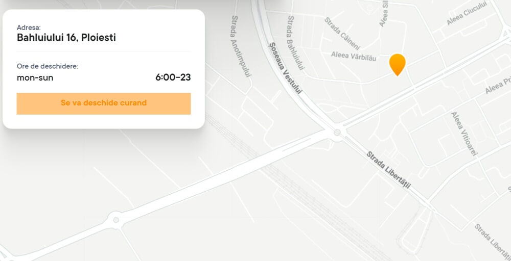 Primul magazin alimentar Froo din Ploiești va funcționa pe str. Bahluiului nr. 16, potrivit informațiilor de pe site-ul companiei. Acesta va fi deschis „în curând”, nefiind precizată, însă, o dată exactă.
