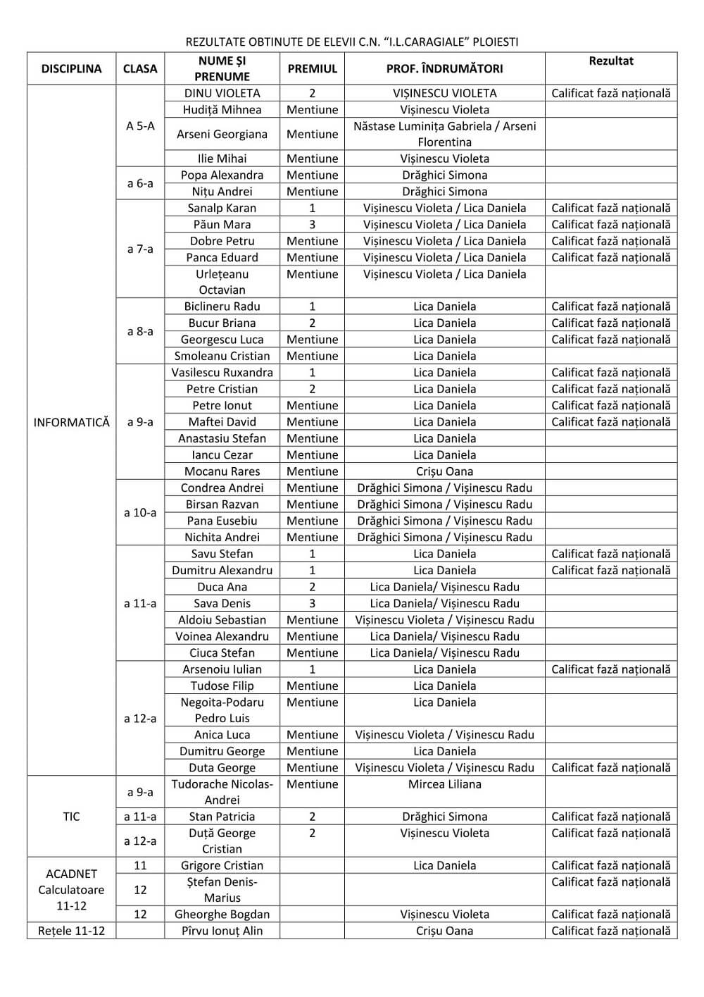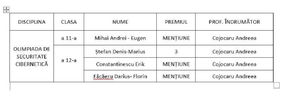 Lista premiilor obținute de elevii colegiului ploieștean, la olimpiadele de informatică/tehnologii: