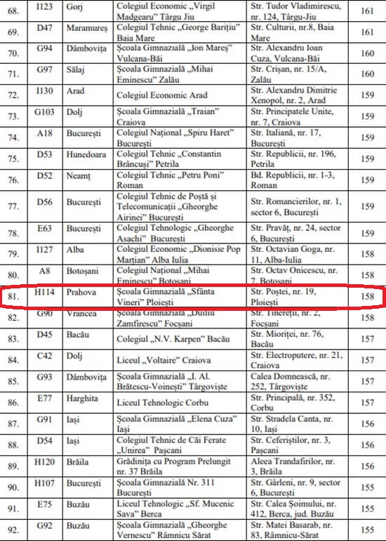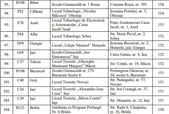 Lista unităților de învățământ desemnate câștigătoare, anul acesta, în cadrul competiției „Școală Europeană” a fost publicată de Ministerul Educației. Sunt 104 școli, licee și colegii care primesc acest titlu.