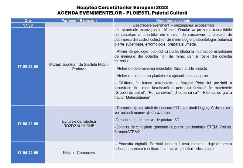 Vineri, 29 septembrie 2023, Noaptea Cercetătorilor Europeni, cel mai cunoscut și longeviv eveniment despre știință și cercetare, își deschide porțile pentru publicul larg, în 28 de orașe din România, inclusiv la Ploiești.