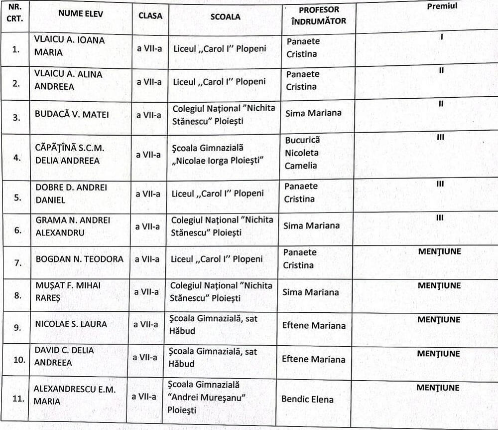 Lista elevilor premiați de Prefectura Prahova: