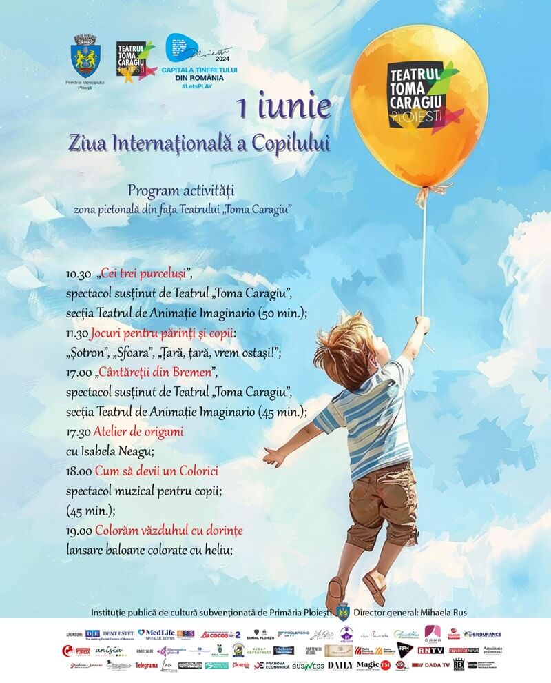 „Cu ocazia Zilei Internaționale a Copilului, Teatrul «Toma Caragiu» Ploiești, cu sprijinul Primăriei Municipiului Ploiești, organizează un eveniment special, pe parcursul căruia zâmbetele inocente, personajele de poveste, talentul și creativitatea, muzica și dansul vor aduce ritm, culoare și energie pozitivă. Vă așteptăm să celebrăm copilăria”, transmite echipa teatrului, odată cu publicarea programului complet al evenimentului.