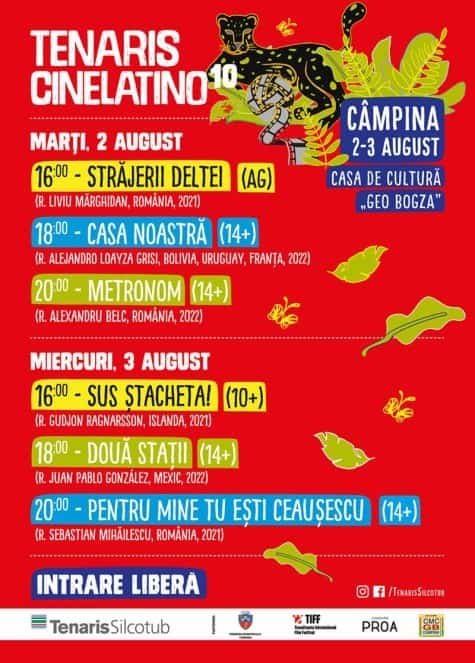 A zecea ediție Tenaris Cinelatino aduce la Câmpina filme premiate și apreciate de public la festivaluri internaționale precum Cannes și TIFF. Casa Municipală de Cultură „Geo Bogza” va găzdui șase proiecții, toate cu intrare liberă, în 2 și 3 august 2022.