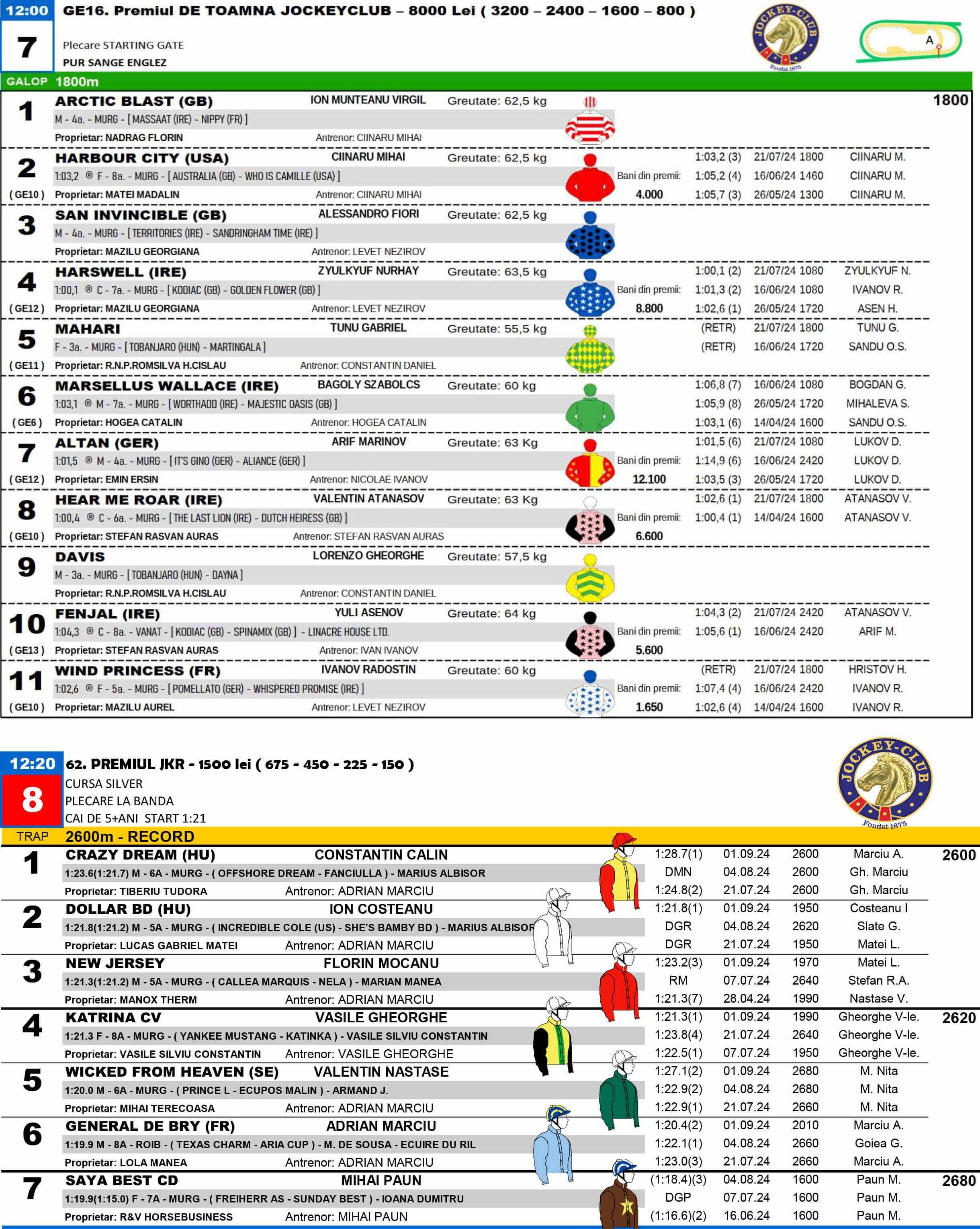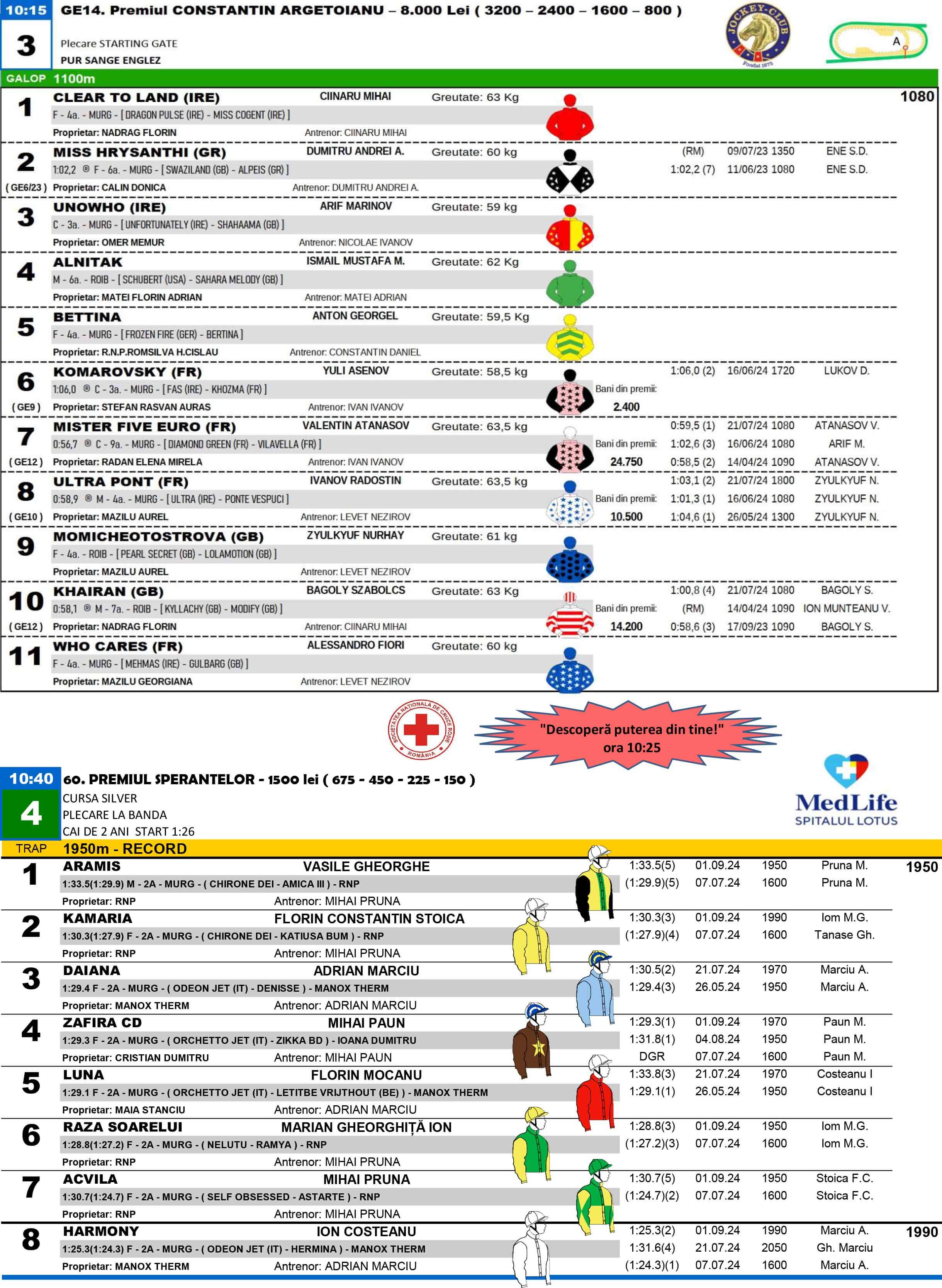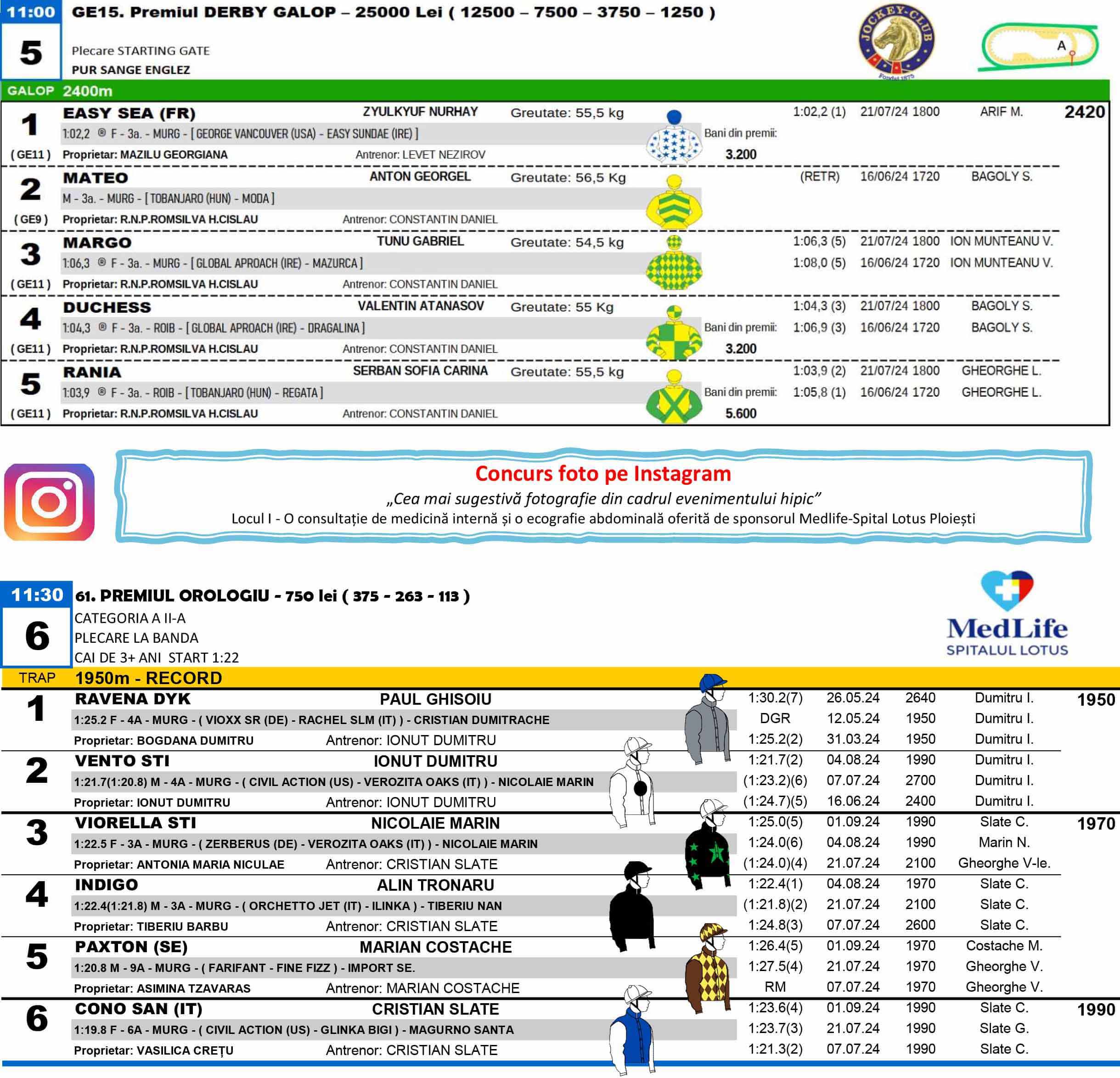 Programul alergărilor cuprinde opt curse: cinci de trap, cu o cursă specială Premiul Speranțelor, și trei de galop organizate de Jockey-Clubul Român. Derby-ul de Galop va avea loc în această duminică, ajungând la ediția 87.