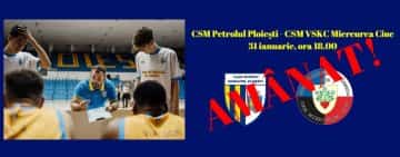 Meciul CSM Baschet Petrolul Ploiești-CSM VSKC Miercurea Ciuc se joacă luni, 31 ianuarie
